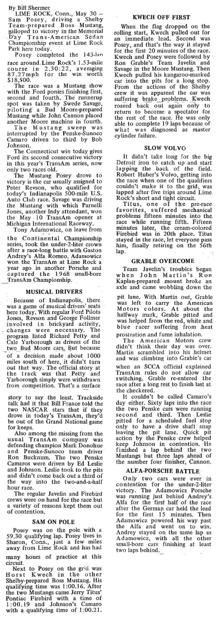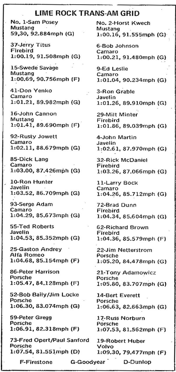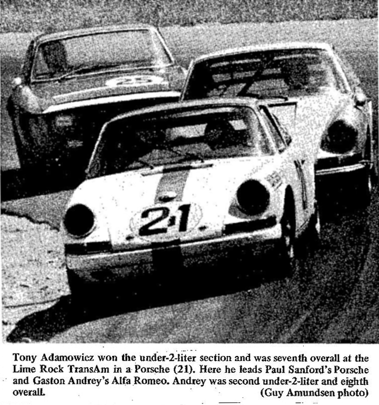 I drove the 69 Trans Am at Lime Rock, Connecticut in the number 21 car and won class, 7th overall – 1st in under 2-liter class. This was the actual #7 Milestone Racing Trans Am under 2-liter winning Porsche, which was sold to Herb. I drove the car by myself at that race.